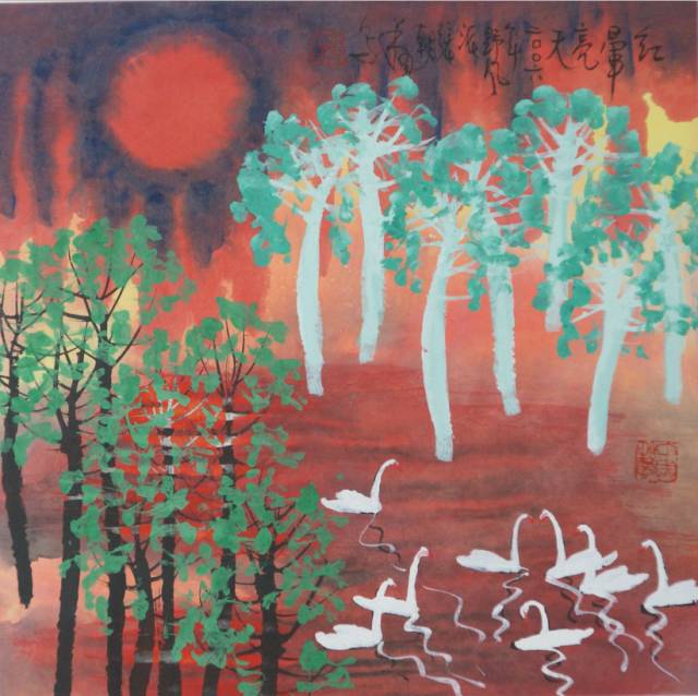 赏读张先生的系列作品,首先感受到画家那种热情洋溢、自由驰骋,豪放不羁的艺术精神,其作融现代造型能力与手法为一体,在追求传统笔墨语言图式的现代转换中,把形象与环境氛围高度浓缩成一个大写的符号,图腾一般淋漓尽致地展示出飘逸洒脱的精神风貌。他的作品具有传统的笔墨情趣,体现出中国画特有的艺术精神,把写意与写实的矛盾化解到临界点,使中国长期被放逐的笔墨重新被深情地呼唤出来,从而营造出如斯一般雄拔万丈的高迈风范和雄视时代的豪情,从他的画作中,我们可以感受到他如同自然之力一般纯净质朴的人格高境。其勇于打破传统程式,大胆借鉴西方大师的色彩'构成技法,以高度的艺术激情创造全新的'符合现代审美精神的图式和笔墨墨语言。