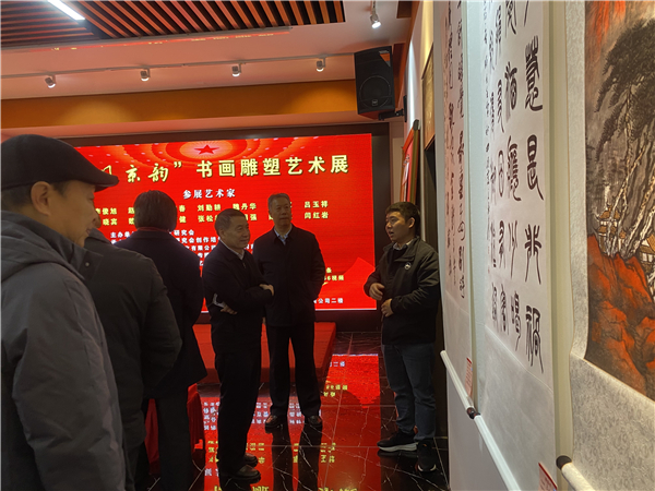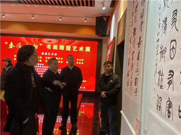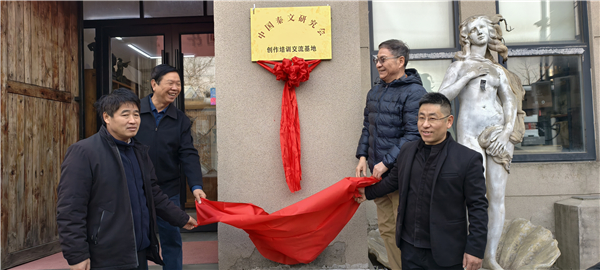 仪式现场,中国秦文研究会党组书记巫民选、副会长许红照、秘书长蔡永占,艺品堂堂主、知名雕塑家董晓宾,中国秦文研究会创作培训交流基地主任李俊旭,副主任赵永争、张继春等共同出席,并为新基地揭牌。