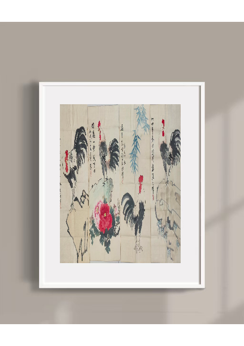 郭栓虎的花鸟作品,是自然生机与文人意趣的完美融合。他深谙“外师造化,中得心源”之道,对花鸟草木的观察细致入微,从含苞待放的牡丹到挺拔劲节的翠竹,从啾啾鸣啼的禽鸟到凝露欲滴的藤蔓,皆能捕捉到最动人的瞬间。在创作中,他师法吴昌硕、齐白石等大师的笔墨精髓,又融入自身对生命的感悟,追求“似与不似之间”的艺术境界。笔下的花鸟既有自然的本真之美,又兼具写意的灵动洒脱,墨色浓淡相宜,线条疏密有致,一朵花、一片叶、一只鸟,都被赋予了鲜活的生命力,仿佛能让人嗅到花香、听到鸟鸣,感受到大自然的蓬勃生机。