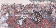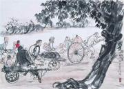 家父说,黄胄是靠画速写起家的,工作之余总是到市区和郊外写生。开封历来是市井气息很浓的城市。当年的相国寺就是个热闹的大市场,很像北京天桥。因此,那里是黄胄常去的地方。另外,大街小巷的市民、商贩以及龙亭湖畔洗衣服的妇女等,都成为他速写的对象,开封城内外到处都留下了他的足迹。他的创作习惯是白天画速写,晚上再加工整理成国画。