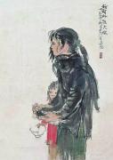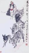 他说:“我看信,你先看画。”这时,我已经目不暇接,有他常画的喂鸡图、骑马的藏族儿童、维吾尔族的姑娘等,都是人物与动物组合的画面。有些画用图钉两三张钉在一起,我只得一张张掀起来欣赏。