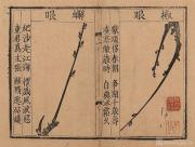 明清之前,课徒稿的形态完成了从粉本、画稿到画谱的转变。从民间画行秘而不传的粉本,到职业画师间的画稿传习,其主要目的皆在于对前人绘画风格及笔法的摹仿,是对师者衣钵的继承,即“师古”。时至宋代,随着编纂植物谱录成为风尚,出现了以木版印刷的画谱,成为可以供画者自习的范本。与粉本、画稿的传移模写教授方式不同,画谱提供的路径往往是在“师古”之前,让习画者首先学会了解自然,尊重自然,面对所画物象要知其名目、识其形态,即“师造化”。南宋宋伯仁编绘的《梅花喜神谱》(图③),普遍被认为是现存最早的木刻梅花专题画谱,其中刻绘的展现梅花生长过程的百幅图像,采用了写意的笔墨语言。该画谱的一大特点是,标题和配文并非画法的讲解,而是提点画梅的意趣,如以“麦眼”“柳眼”“椒眼”“蟹眼”比拟梅花由细尖转变为圆形的生长过程,体现“喜神”二字。