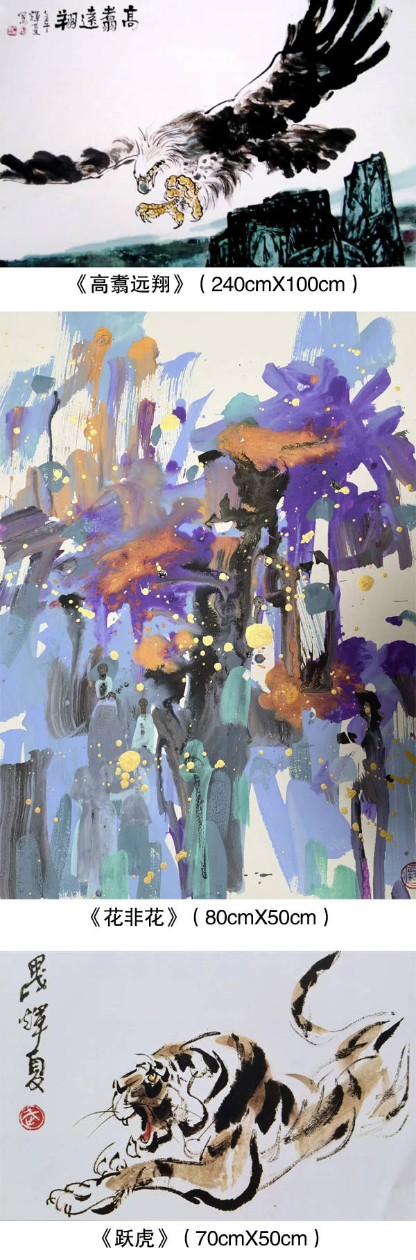 武辉夏国画,油画,版画,宣传画,漫画,大型壁画 ,山水,人物,花鸟,各种动物都有画作,尤以画丹顶鹤著称。他善舞蹈、喜禅乐、重性灵、尚自然,在飘逸之中直取中国画文人精神,常以不经意的行草之笔表现丹顶鹤的风韵。所画鹤,或一片轻岚,空灵寂静;,或千古爽风,鸿风懿彩,始终追求一种至高、至大、至远、至纯的境界。充分表现了画家的潇洒人生。画鹤已成了他的文化符号。