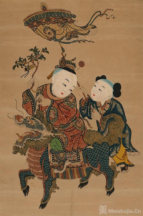 麒麟送子图(墨版套色敷彩) 清乾隆 佚名 苏州市公共文化中心藏