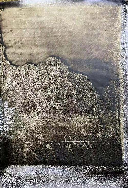 面对那张从故纸堆中“复活”的画作,他看到的或许正是这种裂变的力量。他从一个点、一条线、一束光出发,走向无限的可能。在他的艺术观念中,创作不是在重复中寻找安稳,而是在变化中寻找,在寻找中演绎。“裂纹的嬗变与漫漶”,被他视为“时间写在空间上的诗”。每一道裂纹、每一缕墨痕、每一抹色彩,都是岁月留下的痕迹,都是生命在某一瞬间的凝结。