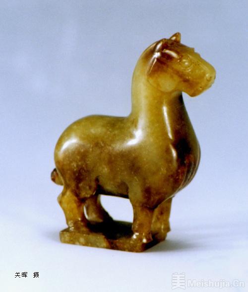 黄玉马是1978年在曲阜鲁国故城遗址考古发掘出土的精美玉器之一。经考证,它来自战国晚期,已在黄土下沉睡了超过2200年。它高仅为5.7厘米,长约5.8厘米,重约50克,可以轻松托于掌心。玉料主体为黄中泛青,温润通透,而马身点缀的天然棕褐色沁斑,则是漫长岁月赠予它的独特“包浆”与记忆。