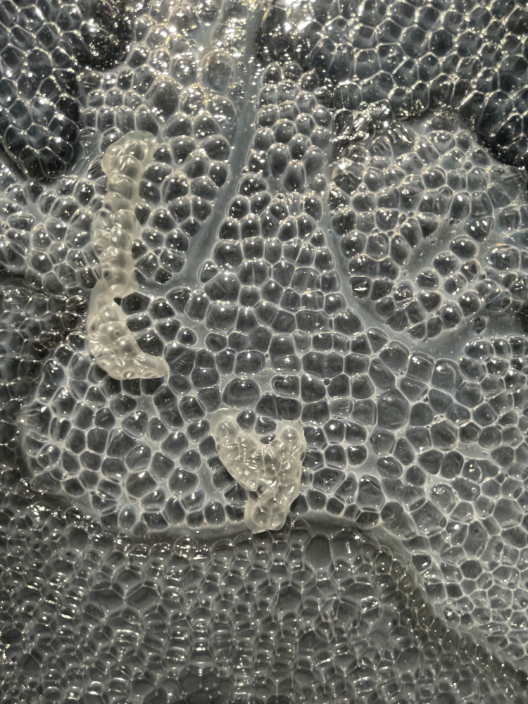 “沧之新境:六人艺术平行个展”-刘在文作品 刘在文此次参展的作品为抽象艺术,艺术材料的独特性,促使观众与之互动,用手指触摸挤压画面上分布的如包装泡沫一样的圆泡,可以听到泡泡破裂般的声音,以此达到身心解压的作用,同时也完成了观众与作品的互动,为艺术的丰富性奠定了良好的基础。
