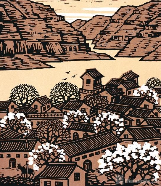 力群 《黄河人家》 木刻版画 2003年 中国美术馆藏