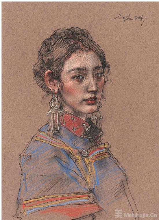 庞茂琨 彝女No.4 52×37.5cm 纸上色粉 2025年