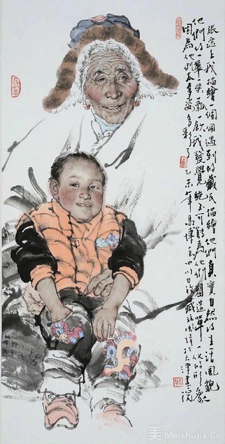 祖孙俩2015年作 色纸托片 138.5×51cm