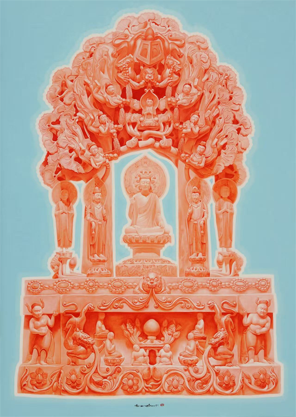 冯丽鹏的作品不仅在学术界引发震动,在二级市场更是展现出势如破竹的统治力。近年来,其作品成交价一路飙升:2020年《长城》以9790万元成交;2021年他的《红色长城》《金山长城》分别以一千多万人民币拍出,作品《大海》拍出6930万;2023年作品《心经》拍出8601.60万,同样在2023年,单幅力作《幻殿》更以1.069亿元的天价易主,刷新了中国“80后”艺术家的最高成交纪录。从其作品价格的飙升曲线,折射出市场对他艺术成长性的绝对信心。