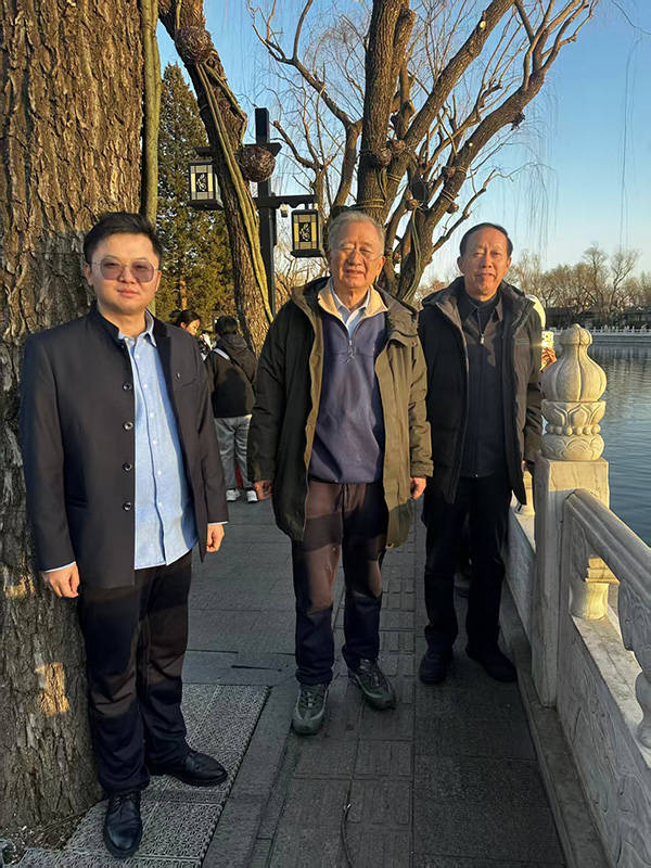 交流活动尾声,张琳主席、副秘书长张方金与九疑派古琴传承人马宏腾先生陪同陈传席教授漫步后海,赏水岸风光、品京韵风情,在湖光山色间畅谈文化传承与艺术创作,为此次交流活动增添了一抹悠然雅致的色彩。