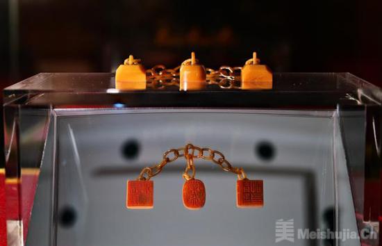 “田黄石乾隆帝三联印”。 (鼓浪屿故宫文物馆 供图)