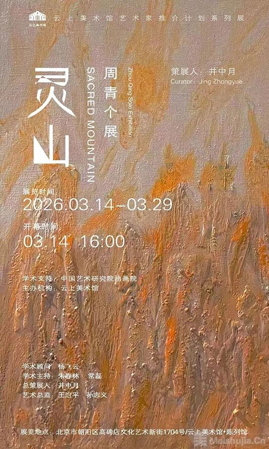 由云上美术馆主办的“灵山——周青个展”于3月14日至3月29日在北京云上美术馆·陈列馆展出。杨飞云担任展览学术顾问,朱春林、常磊艺担任学术主持,策展人为井中月,艺术总监为王治平、孙志义。