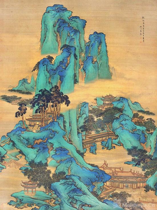 展览以农历十二个月为时间轴,每月聚焦一种传统颜色,通过“时”“色”“藏”“文”四个维度,以院藏书画、瓷器、服饰等文物为载体,系统呈现中国传统色彩文化的深厚底蕴与视觉传承。3月5日至4月4日,展览聚焦颜色“石青”,展出该院收藏清代画家袁耀的《仿阿房宫山水》。