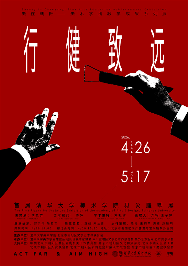 2026年4月26日,由清华大学美术学院和北京市朝阳区文学艺术界联合会主办,中共北京市朝阳区委区直属机关工作委员会、北京市朝阳区文化和旅游局、北京市朝阳区总工会、北京市朝阳区妇女联合会、北京市朝阳区工商业联合会、北京市朝阳区新的社会阶层人士联谊会支持,清华大学美术学院雕塑系、朝阳区美术家协会、来广营地区文学艺术界联合会、象外艺术空间、艺术共享平台共同承办的“行健致远——首届清华大学美术学院具象雕塑展”在象外艺术中心盛大开幕。