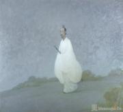 展览上篇为“荆楚文脉·楚辞源流”。通过对《楚辞》文学与《楚辞》的图像进行谱系梳理,让观众直观地感受到楚辞图像的发展脉络。展览以郑振铎先生编纂的《楚辞图集》为展览开端,以历代《九歌图》及相关文献为承续,带领观众开启一次诗意之旅。其中,将《楚辞图集》中收录的陈洪绶木刻《屈子行吟》与田少鹏油画《屈子行吟》进行对照展示,可见田氏作品的整体造型与明代陈洪绶作品一脉相承,但以油画朦胧之意象进行了全新表达,是中国油画写意性发展的一种典型。